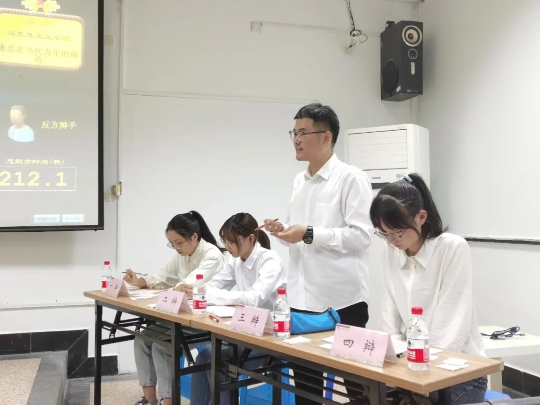 围绕“佛系是当代青年的解药或是毒药”的辩题,双方展开了热火朝天的激烈辩论。从开篇立论到结案陈词,双方辩手们深情并茂、据理力争,咬住一两个关键论点反复盘问对方,整场辩论选手们镇定自若、谈吐自如,双方辩论火药味十足。