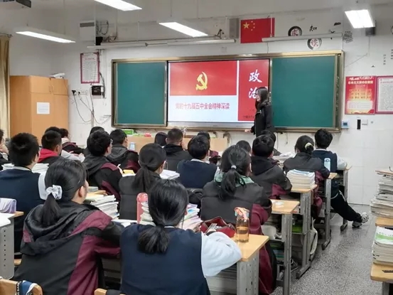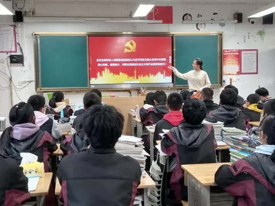 两位实习教师深刻的政治责任感,充实的课堂内容为中学学生们开启了学习贯彻全会精神的热潮。通过本次教学宣讲,同学们对中国共产党领导和中国特色社会主义制度的显著优势和强大生命力有了更为深刻地体会,激发了同学们对祖国强烈的发展信心。大家纷纷表示要为实现“两个一百年”奋斗目标、实现中华民族伟大复兴的中国梦贡献出自己的力量!借助思政课堂实现课程育人价值,让专业教育课堂上出情怀担当,奏响育人主旋律。同心同德,努力奋斗!