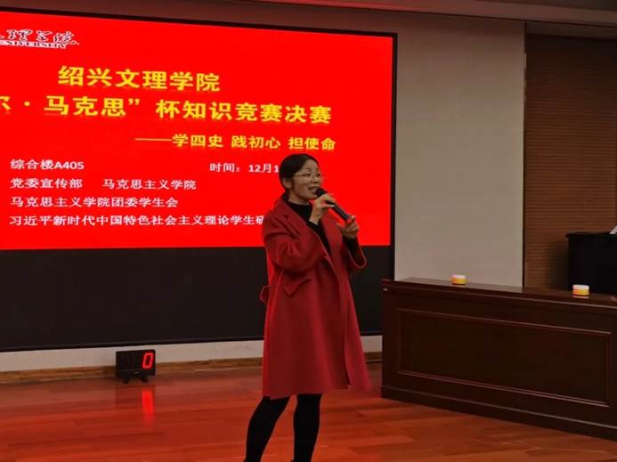 12月1日晚六点三十分整,BV伟德官方网站“卡尔·马克思杯“大学生理论知识竞赛决赛在南山6号楼A-405顺利举行。来自各学院的14名同学参与了“四史”知识答题竞赛,7位同学参与时事评论竞赛。由校党委宣传部陈郑老师,BV伟德官方网站党总支书记陈红老师,BV伟德官方网站史纲教研室俞婉君、王中文、周勇军老师,学生科科长俞雅芳老师莅临指导。