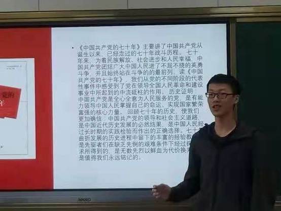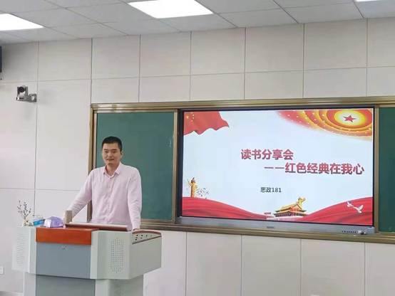 阅读红色书籍,重温红色经典。为继续弘扬革命精神,传承革命传统,鼓励更多同学通过读书的形式牢记历史、不忘初心,提升专业修养。2021年4月30日上午,思政181班在610教室开展了本学期第二次读书分享会。此次分享会由陈思成主持,共有五组代表进行读书分享,并邀请到任课教师王明亮老师共同参与活动。