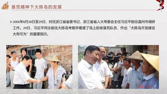 各位老师,各位同学,大家好,我们是张权老师带领的权倾天下小组,今天我们为大家带来的微课是“勇立垦荒志,永铸垦荒情”,我们围绕着大陈岛垦荒精神,针对大陈岛红色资源及其现代化实践做了一系列深入调查。