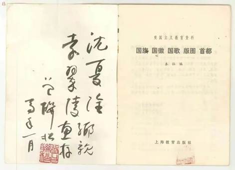另一个是曾联松的学生沈夏淦将一本曾联松签名的爱国主义教育资料《国旗国徽国歌版图首都》捐赠给国旗教育馆。沈夏淦回忆,当时曾联松兴致勃勃地拿出一本书《国旗国徽国歌版图首都》送给他,并在扉页用毛笔书写“沈夏淦袁翠陵乡亲惠存”10个大字,还盖上了自己的印章。