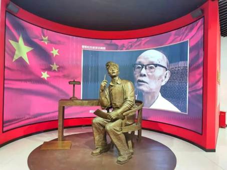 走进国旗诞生厅,一座生动传神的雕塑引人注目:国旗设计者曾联松先生坐在书桌前,一手握着铅笔,一手拿着稿纸,仰望星空陷入沉思。这尊雕塑由中国雕塑学会会长曾成钢制作,表现了曾联松设计五星红旗图稿时的情景。