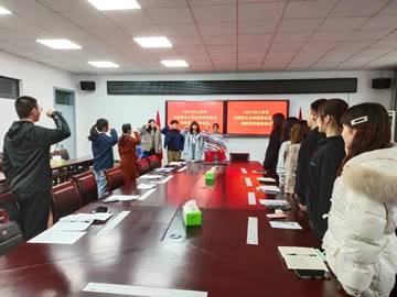 第五个环节,入党宣誓仪式。入党宣誓仪式由正式党员陈姗姗带头宣誓,在座所有党员全体起立,举手宣誓。