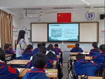 接下来,她介绍了修筑鉴湖的工程师马臻,通过“马臻修筑鉴湖的艰难”的知识点概述,引申关于“马臻身上的精神财富”以及“鉴湖建成对绍兴的影响”两方面重点讲授,引发学生深入思考与激烈讨论,与此同时,设计鉴湖的旅游解说词的课堂活动环节,使课堂氛围活跃,同学们都各抒己见,积极参与其中。