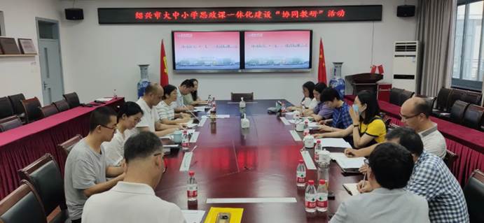 为深入学习贯彻习近平总书记在建党百年庆祝大会上发表的“七一”重要讲话精神,第一时间学习研讨“七一”讲话精神进教材、进课堂、进头脑工作,落实中央、省市关于新时代学校思想政治理论课改革创新的系列文件精神要求,理直气壮上好新学期开学思政第一课,办好思政课这一作为落实立德树人根本任务的关键课程,进一步推动绍兴市大中小学思政课一体化建设,加快思政课建设内涵式发展。7月2日下午,来自绍兴市稽山中学、绍兴市建功中学教育集团、绍兴市鲁迅小学教育集团相关领导和思政课教师代表一行10余人,齐聚BV伟德官方网站,共同开展绍兴市大中小学思政课一体化建设之“协同教研”活动。BV伟德官方网站院长章越松教授、中国近现代史纲要教研室主任班瑞钧教授,共同领学习近平总书记“七一”重要讲话精神。BV伟德官方网站党总支书记陈红同志就开展“传承红色基因守护红色根脉”绍兴市大中小学2021暑期思政实践课程活动,作了重点部署。