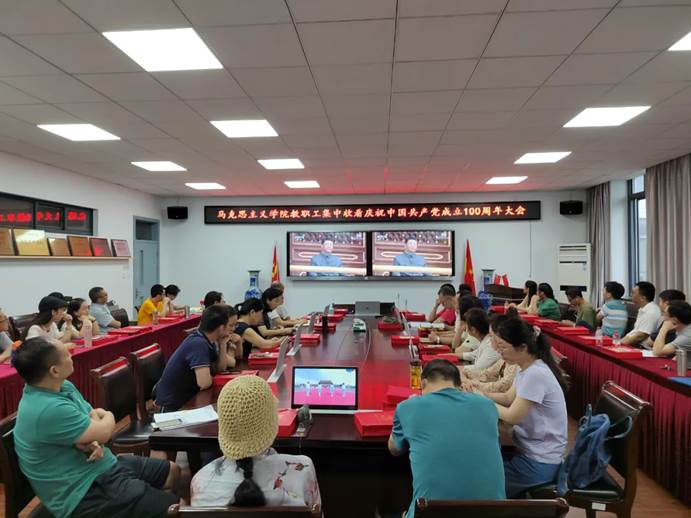 7月1日上午8时,伟德官网全体教师齐聚南山12号楼402会议室集体观看中国共产党成立100周年大会现场直播,并进行热烈讨论。