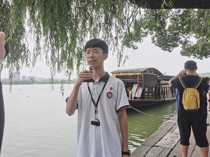 7月8日早七点三十分,BV伟德官方网站师生代表和鲁迅小学、建功中学、稽山中学师生代表乘坐大巴车前往嘉兴市南湖进行研学活动的第一部分。经过将近一个半小时的车程,大家来到了南湖景区,感悟红船精神。