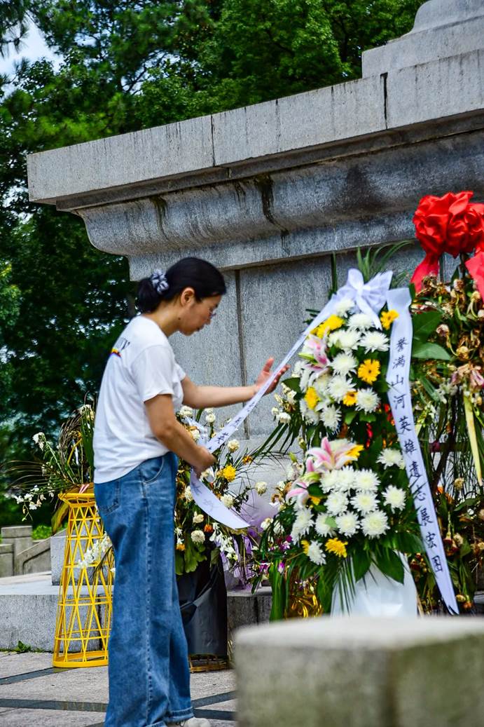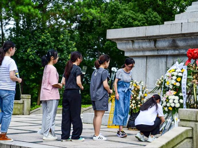 接着,学生代表潘钦杭、倪瑜向浙东革命烈士敬献花篮,教师代表袁海平为花篮缕穗,全体师生将手中的鲜花放至烈士纪念碑下,并绕纪念碑一周,缅怀革命先烈。全体师生面向革命烈士纪念碑三鞠躬,并默哀3分钟。