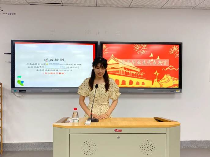 第二个环节是“临别寄语”,先后由陈红书记毕业致辞、优秀毕业生代表陈怡发言和班主任任志芬寄语。陈书记表示,师生一起在四年里经历了很多,去年的抗疫和专业认证,是极大的考验。同学们很努力,在大学阶段赢得了一份收获满满的“成绩单”,希望同学们开拓奋进、刚毅坚卓、懂得感恩。最后也表示望师生今后能够保持紧密联系,请同学们记得“常回家看看”。