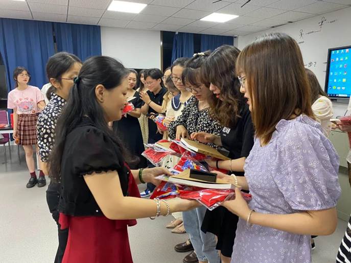 最后一个环节是“赠送仪式”。各位老师给每个毕业生赠送《稚音》、毕业班照片集锦,毕业班为学院赠送书柜,最后,大家一起拍照留念。