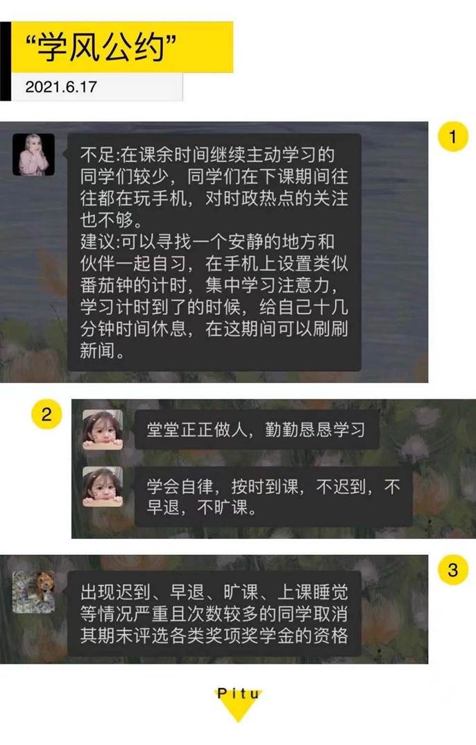 支部同学对于班级学风建设中的不足进行了总结,踊跃提出建设措施并形成切实可行的学风公约。此外,支部同学还认真反思了自己目前的学习状况,积极端正了自己的学习态度,为即将到来的期末考试做好充足的准备。