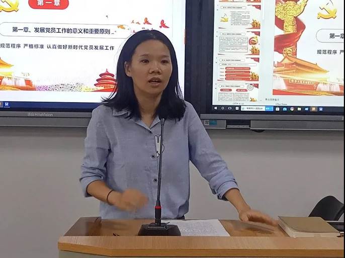 肖老师首先对学院党总支有大概的介绍,让大家对学院党组织有了初步了解。接着,针对新生情况讲述入党程序,并重点强调对党史知识以及党最新理论应该有全面了解,让大家更加了解在当下情况可以为入党做好什么准备。在最后,肖老师教大家学会如何更好使用“学习强国”APP并在此基础上进行了一些小活动。