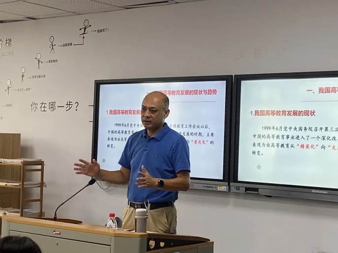 2021年9月8日上午八点半,新生汇聚606教室,聆听章越松院长思政教师职业伦理课程。章院长将本堂课程大致分为三个部分,分别是什么是大学与大学精神,文理学院的前世今生与思政专业的前世今生。课堂上,章院长博闻强识,引经据典,利用大量的例子和风趣的语言引人入胜,无形中加强了新生对学校和学院的归属感。