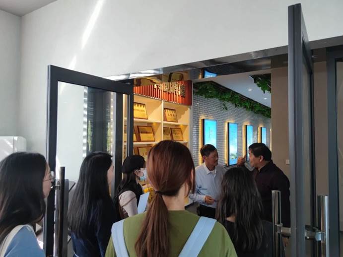 随后,在陈惠飞书记的带领下,大家参观了文化礼堂内的成果墙。陈书记表示,近年来,村里取得了不少成就,包括盘活“三资”、构建枫江学堂、铺桥修路、创建关爱基金等,这些都离不开党的领导和村民的共同努力。在后来的交谈过程中,陈书记指出,目前枫江村的发展状况良好,还有一批以省乡村振兴带头人、省劳模、“米果果小镇”董事长陈照米为代表的乡贤反哺,村民生活蒸蒸日上。但目前在实践的过程中仍存在部分问题和不足,欢迎小组成员为枫江村的发展提供更好的建议。