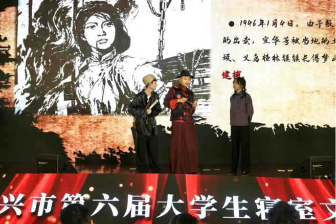 伟德官网学子深挖绍兴党史,从中找出了一个颇具代表性但不为人们所熟知的革命烈士——宣华芳,将她的事迹稍加改写之后搬上了舞台,同时,结合伟德官网“越讲越红”大学生理论宣讲团的基本情况,讲述了伟德官网大学生习近平新时代中国特色社会主义思想研究会的演进过程,展示伟德官网学子与老师的各种宣讲事迹,进行了精彩绝伦的演绎,表演效果绝佳,获得了现场观众热烈的反应,在12组高校队伍中脱颖而出,以88.6的高分荣获赛事一等奖。
