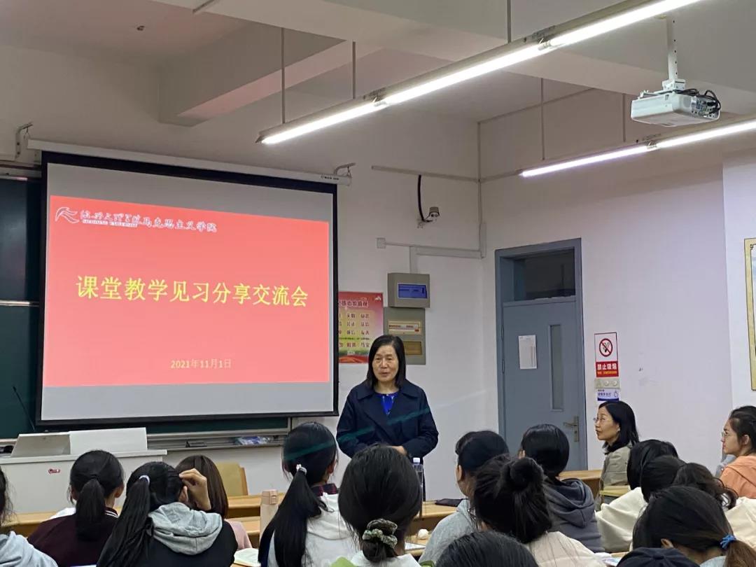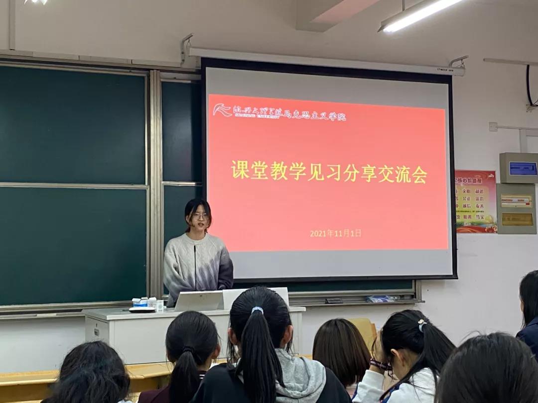 紧接着,开展了课堂教学见习分享交流会,同学们就第一天见习听课的所见、所思、所想以小组的形式派出代表上前发言,相互交流听课心得,畅所欲言。并且俞婉君老师对上面同学的分享做出点评和总结。
