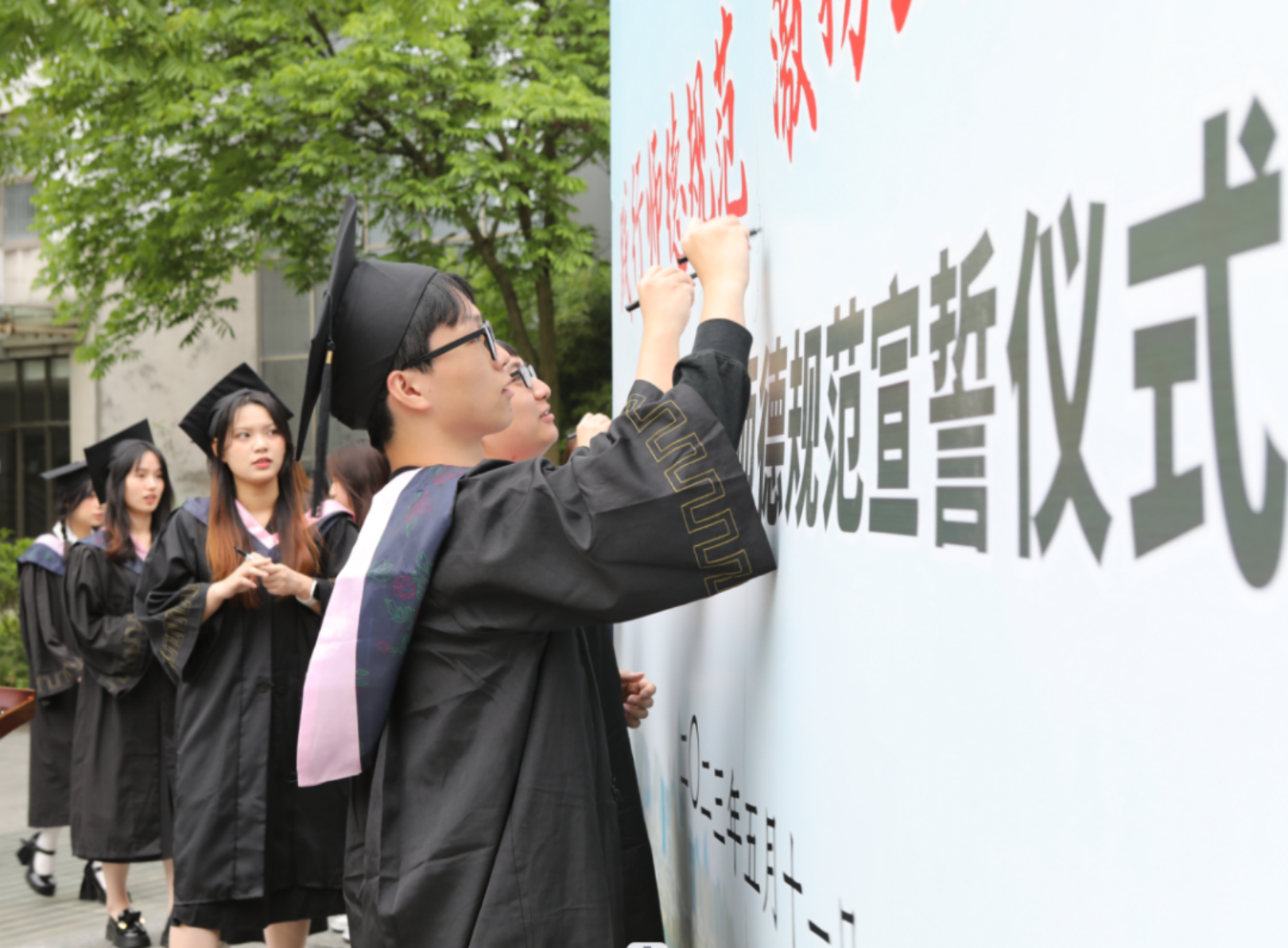 最后,全体毕业生依次在宣誓墙上签名并合影,仪式圆满结束。用言行树立正直的人格,用真诚沟通心灵的桥梁,这是对教师最好的诠释。通过这次简朴而庄严的从教宣誓仪式,毕业生们体会到了即将成为一名人民教师强烈的责任感,渴望在教书育人中实现自我,实现自我价值,争做新时代的四有好教师。