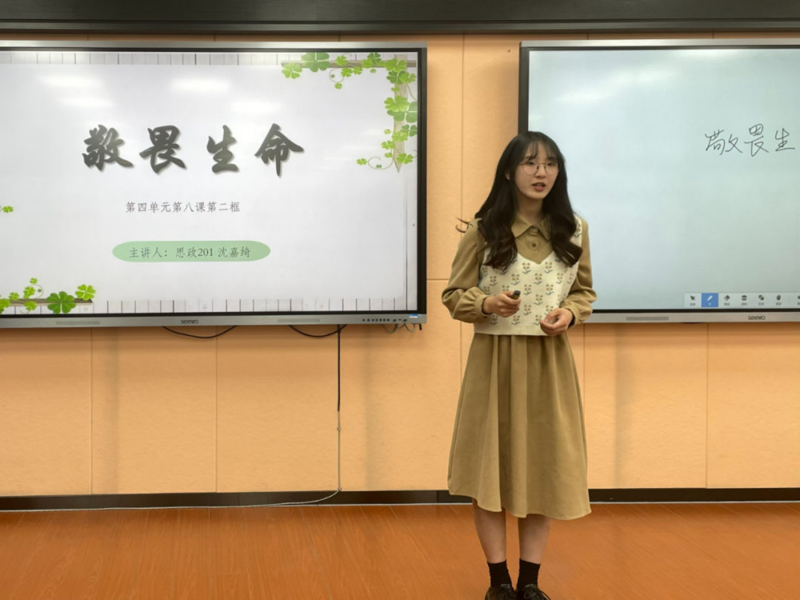 本次竞赛以“如何正确看待生命、敬畏生命,活出生命的精彩”为主题,每人限时5分钟,采用课堂片段教学展示。每位选手依次上台展现自己的风采,有的选手条理清晰、有条不紊地梳理出课堂的脉络;有的同学用事例引出课堂主线,层层深入,抛出的问题引人深思……大家风格各异,落落大方,为大家带来了精彩纷呈的课堂片段。