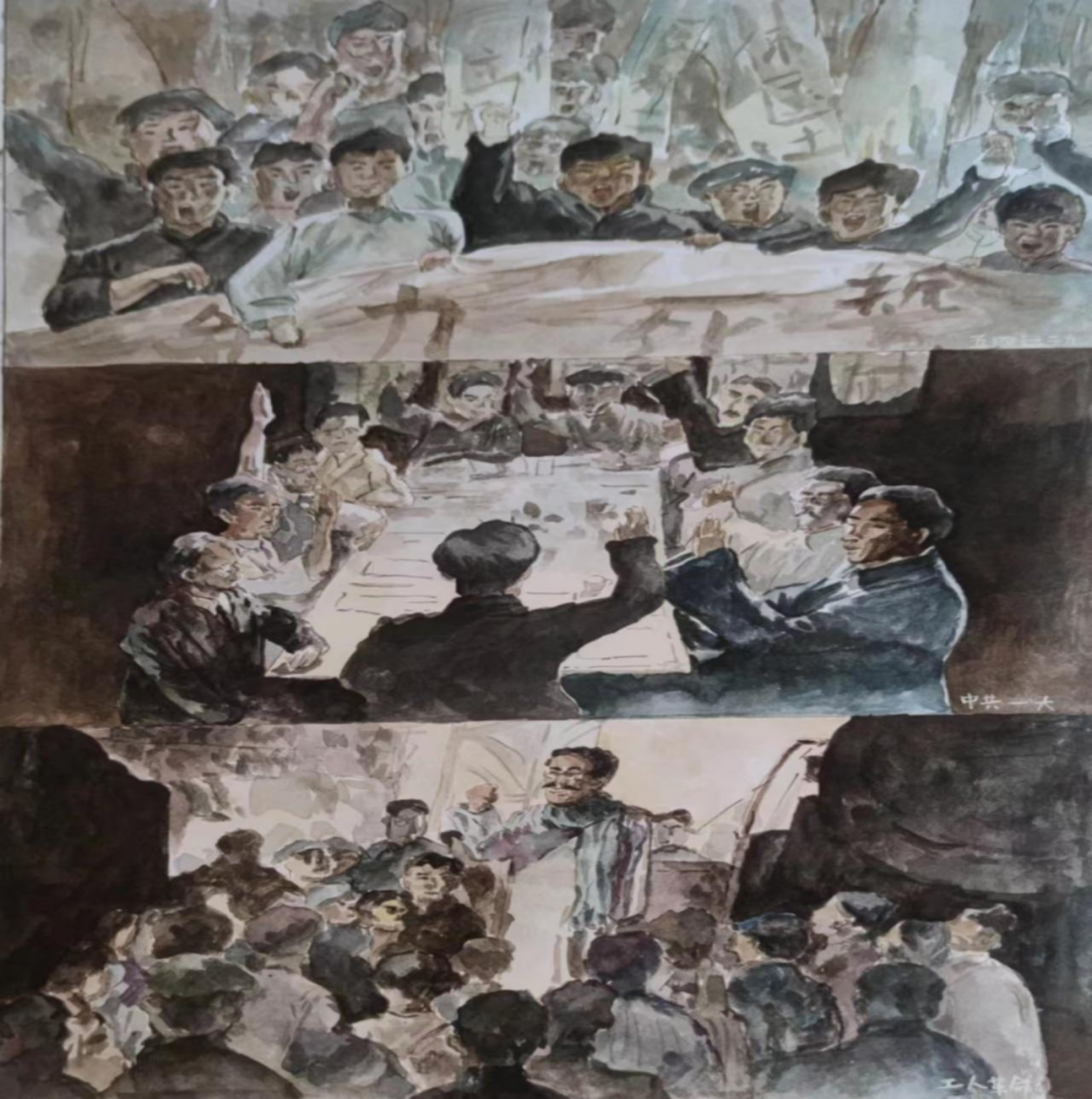 “作品是以红军长征为背景,用黑白勾线的形式勾勒出中国红军长征的生动画面,通过颜色对比凸显了党旗的红,将革命的理想和信念融合在了长征精神里。”服装与服饰设计2211班郑颖同学介绍到。从“长征路上的红军”“工人革命”“五四运动”等图画报,到“日本投降矣”“红船精神”“人民日报(特别版)”等手抄报,70余副的“红色画报”是学生们结合课程内容致敬中国共产党成立102周年的生动实践。