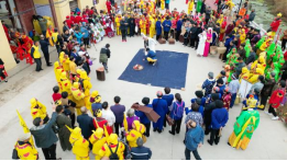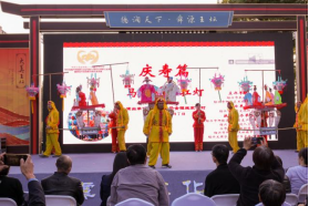 姚氏宗亲代表舜裔宗亲献上马金姚家扛灯