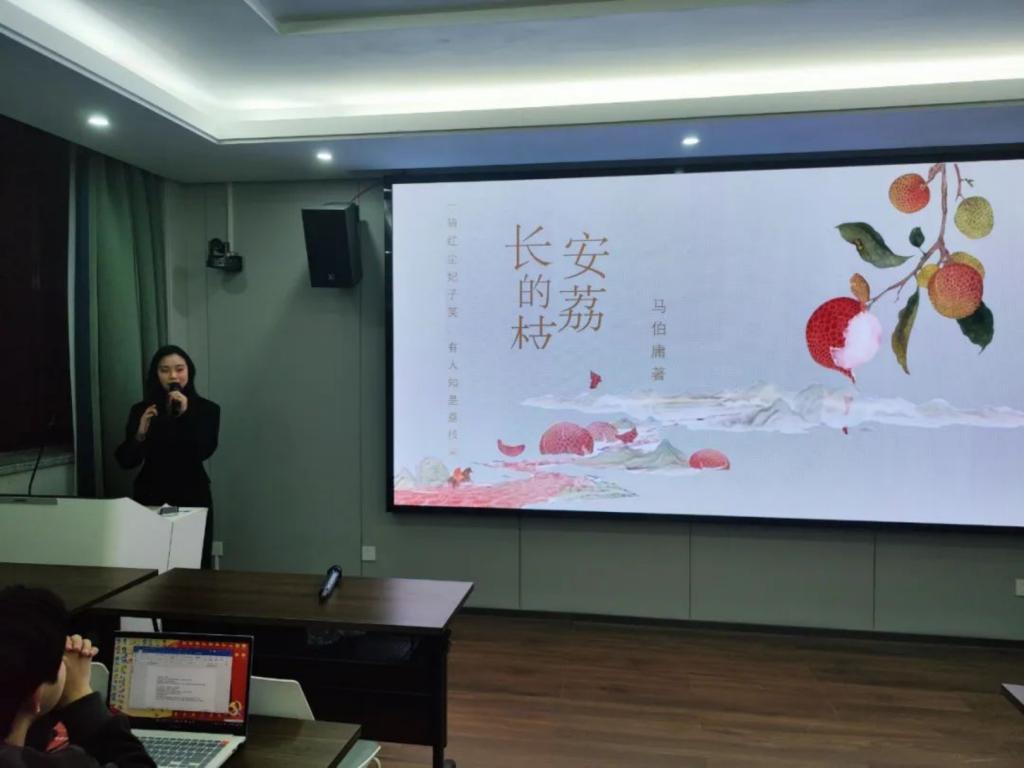 赵燕同学分享了马伯庸的《长安的荔枝》,架构在“一骑红尘妃子笑,无人知是荔枝来”的典故,剖析人性与社会,感慨阶层的分化,小人物的辛酸苦楚,在引起同学们深思,也表达了无问成败,奋力向前的精神。