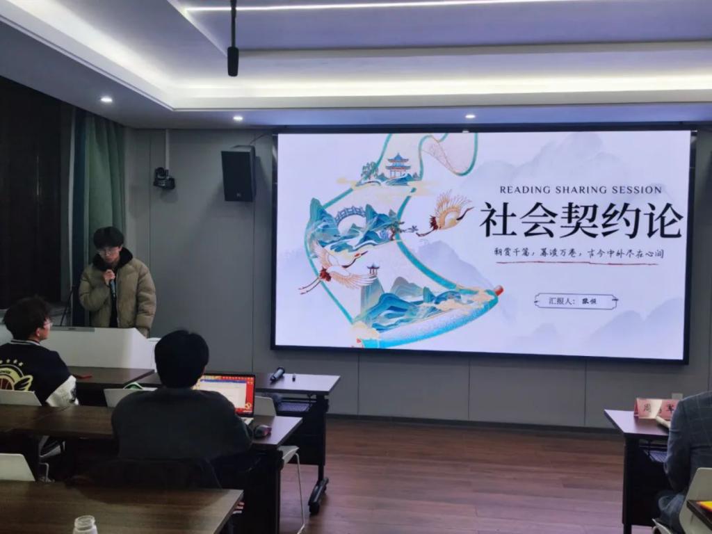 张恒同学分享了卢梭的《社会契约论》,启蒙精神经时间长河冲刷,亦如大浪烁金,历久弥新。让我们在了解作者生平与主要观点、现实意义的同时,从中汲取奋发向前的力量。向社会契约致敬,向人民主权致敬。