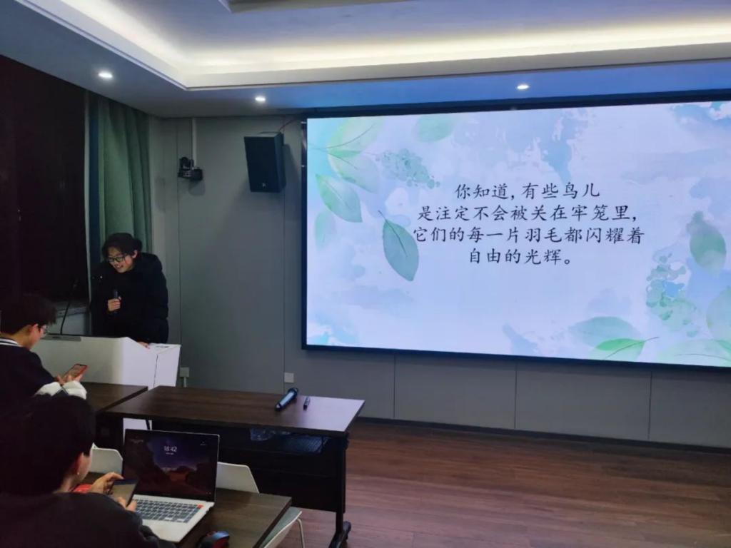王力亚同学分享了斯蒂芬金的《肖申克的救赎》,带领同学们从中收获感动。在绝境处不沉沦,处处昭示着自由与人性的光芒。告诉我们困缚人的从来不是高墙铁网,而是丧失向往自由的人心。