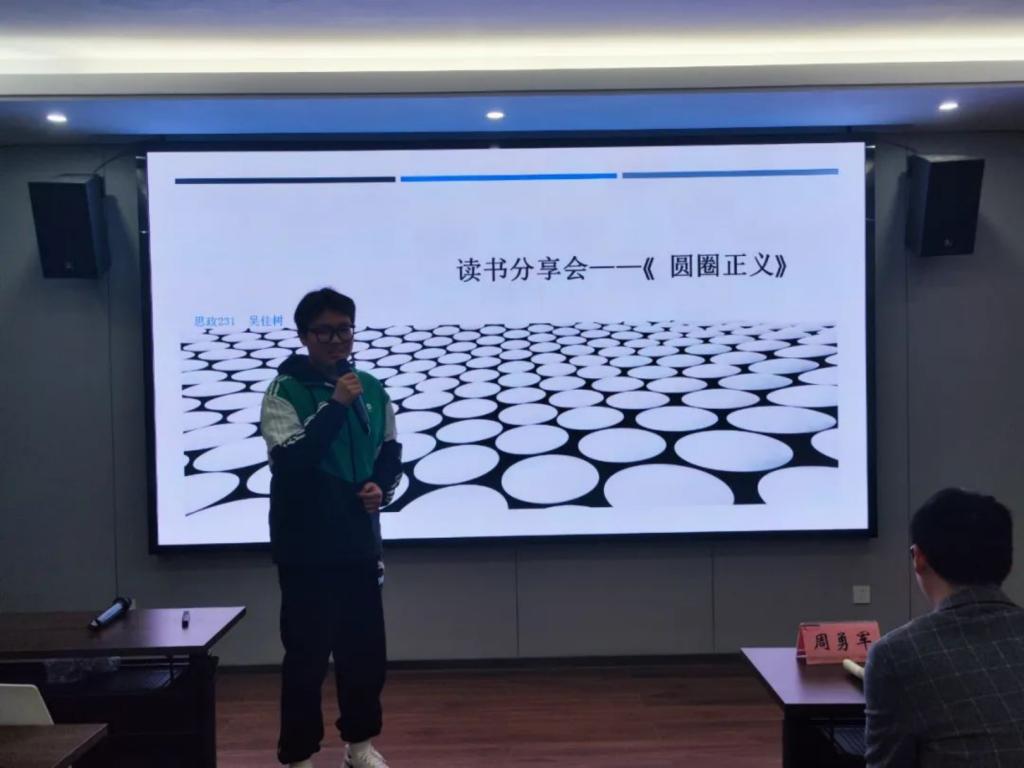 吴家树同学分享了罗翔老师的著作《圆圈正义》,与我们探讨了法律、正义、道德的理念与现实,启蒙同学们的法律意识和法治观念,也帮助同学们理解法律背后更深层次的价值基础。