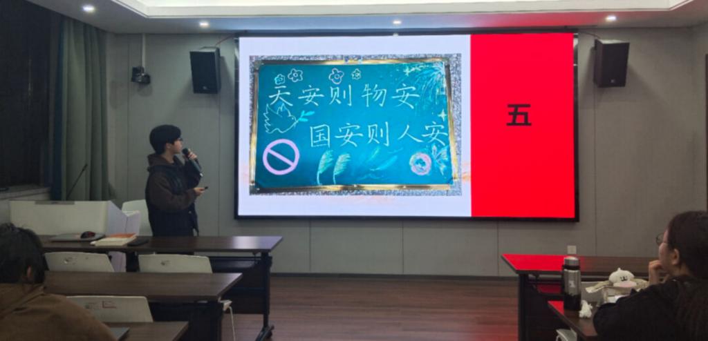 思政231团支部成员在教育见习中旁听了王芳老师关于维护国家安全与荣誉的课程,老师深入浅出的授课使同学们受益匪浅。此外,团支部还组织国家安全标语宣传的趣味活动,各寝室在小黑板制作美化标语作品,加强了对国家安全的重视。徐瑶瑶同学带来了国家安全知识科普,历诗诗同学主持了国家安全知识答题,安润祥同学推荐了国家安全打卡点,同学们即享受了乐趣,又收获了知识。