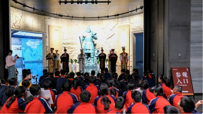 皮影折子戏《禹献妙计统天下》、情景短剧《八大臣共商舜禹禅让》、经典诵读《对话典籍里的尧舜禹》……58日,在大禹陵景区,BV伟德官方网站联合杭州和绍兴的四所中小学校——绍兴市长城中学、柯桥区王坛镇中学、柯桥区王坛镇中心小学和杭州市文华中学共同举办了一场主题为传承与自信:绍兴舜禹文化大中小杭绍学校联合研学活动。100余名大中小学通过沉浸式教学,进一步加深了对舜禹文化的精神实质刻的体验和理解。