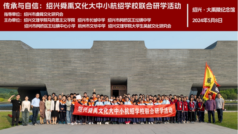 古有三圣,越兼其二,作为舜禹传说的发源地,绍兴不仅保存着丰富的历史遗迹,更承载着深厚的文化底蕴。在这里,舜帝的仁爱礼让和大禹的公而忘私精神,历经千年仍深深植根于人们的心中。为了弘扬这份宝贵的文化遗产,绍兴市虞舜文化研究会指导下,杭绍两地教育性传承舜禹文化五所大中小学校,共同策划并开展了这场别开生面的纪念舜禹活动。我们希望通过精心设计的活动流程,让学生们不仅能够深入了解舜禹传说故事,还能亲身体验到文化的魅力,从而在他们心中播下文化自信的种子,将舜禹文化的精神内涵传承下去,让这份文化根脉在新时代继续繁荣发展。活动指导老师俞婉君道。
