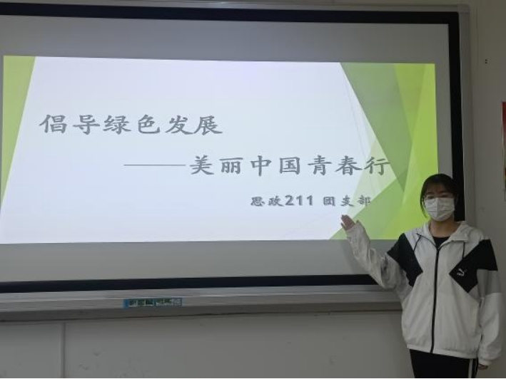 思政211团支部组织全班同学共同学习以“倡导绿色发展——美丽中国青春行”为主题的相关内容,重点介绍习近平总书记的生态文明思想,包括其基本方面、核心理念等,旨在树立同学们的生态文明和投身美丽中国建设意识,以青春行动助力绿色发展。