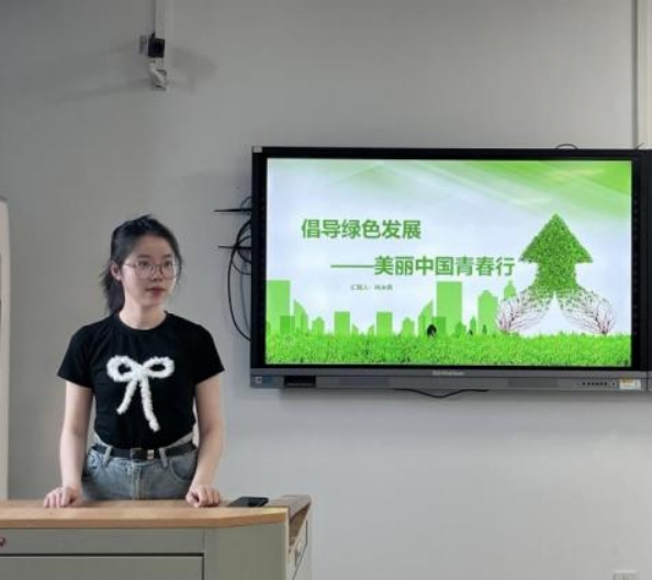 思政231团支书从宏观角度出发,带领同学学习国家的绿水青山就是金山银山,人与自然和谐共生等绿色发展理念。接着就自身所学习的关于中国式现代化的理论知识,结合亲身体会和同学们分享了绿色发展的重要性和必要性。