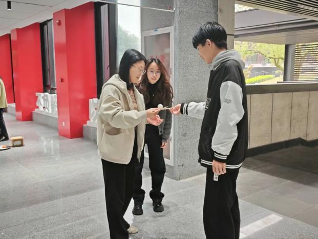 活动伊始,马院全体师生在食堂门口集合,以导师带自己所结对导生为单位进行打卡,打卡路线为食堂(领取盖章纸)-青藤书院-竞雄书院-体育馆-马院(终点领取奖品),每位师生都按要求完成打卡集章后获得小礼品。
