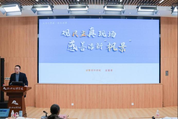 “认知艰辛团队收获——四个关键词可以作为参加本次协同教研活动的体会……诸暨市荣怀中学思政课教师宣国荣不无感慨地说道。2024126日上午,BV伟德官方网站BV伟德官方网站主办的 “‘枫桥经验’进校园 ‘真理味道’共品悟”绍兴市大中小学思政课一体化名师工作室协同教研活动在则江大讲堂107报告厅顺利展开。绍兴市大中小学思政课一体化名师工作室联盟导师和成员、第二期绍兴市大中小学思政教育一体化骨干教师培训班全体学员、BV伟德官方网站BV伟德官方网站师生代表共计一百余人参与。活动由BV伟德官方网站BV伟德官方网站党委书记陈红主持。