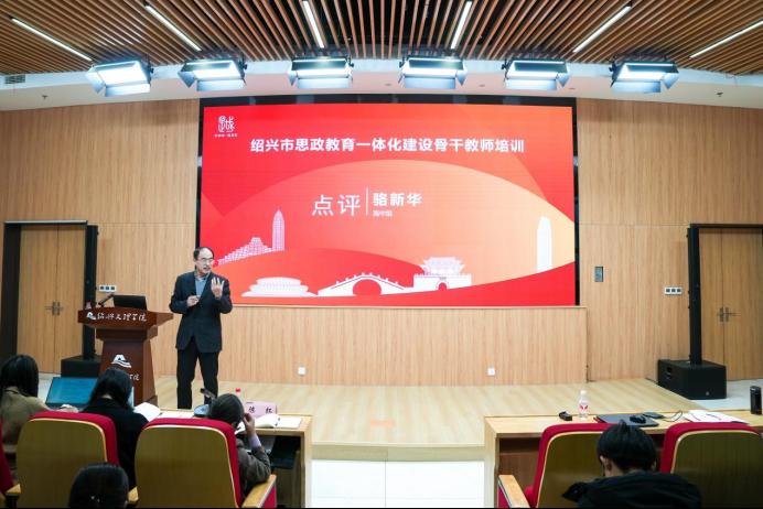 活动伊始,绍兴市教育教学研究院副院长戴军熔以“新时代中小学思政课教师的教与研”为主题开展了一次专题报告讲座。她从思政课教师“三个导向”开展共研、共建、共享说起,提出要深耕教育,从思政小课堂转向社会大课堂;深耕课堂,从关注思政教学到关注思政教育;深耕课程,从日常教育行为转向教学主张思想。“学生是整学段的经历者”,大中小学思政课一体化建设要关注学生整个生命的成长过程,着力解决真问题,实现其意义和价值。