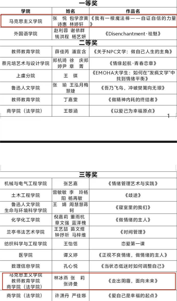 张悦、包学彦、黄诗惠、林婷轩四位同学的《我有一根魔法棒——自证自信的力量》作品,在众多参赛作品中脱颖而出,获得一等奖。