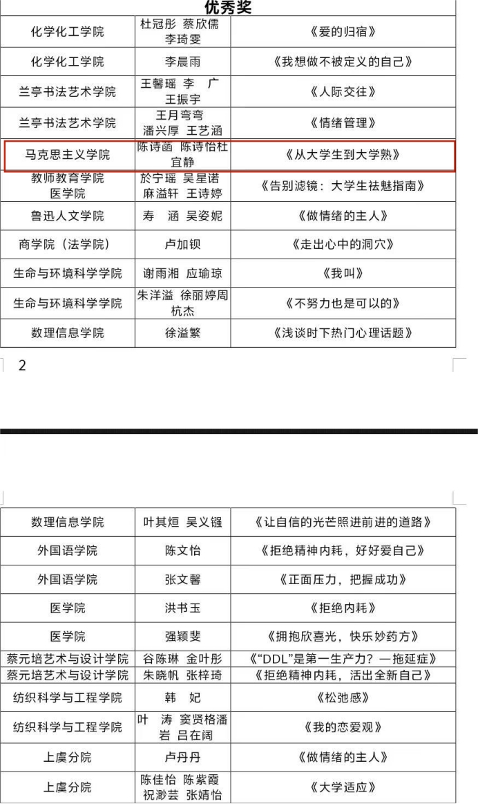 陈诗菡、陈诗怡、杜宜静三名同学的作品《从大学生到大学熟》获大赛优胜奖。