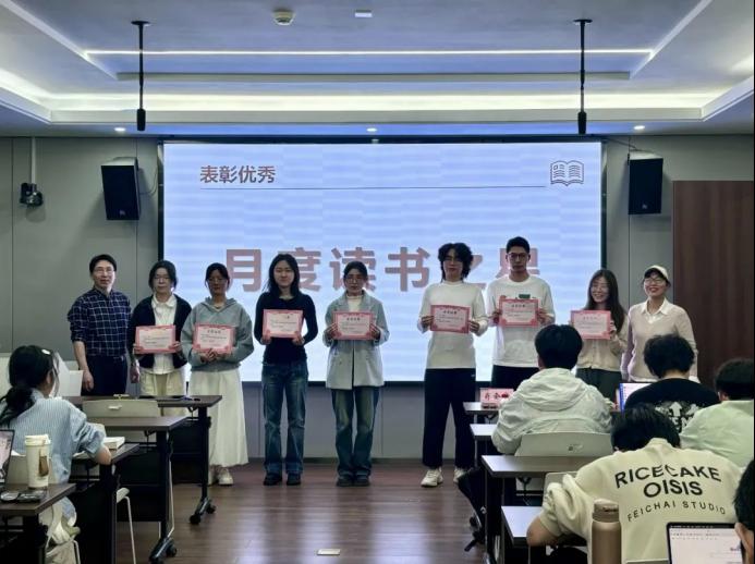 分享会伊始,主持人公布了本月“阅读之星”的获奖名单。梁哲悦、陈思婷、於夏亦吟、林淑琪、徐子钰、金伟毅、郁叶璐这几位同学凭借自身的阅读积累与对书籍的热爱荣获了这一称号。两位老师亲自为他们颁发奖状,鼓励他们在读书之路上继续砥砺前行。