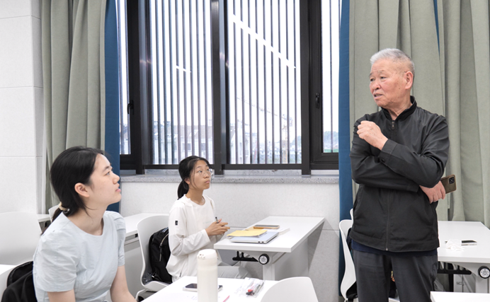 在互动提问环节,五位同学就中美贸易战、当今国际形势与抗战精神作用等议题踊跃发问。王老师紧扣问题,从历史与现实的维度深入剖析,探讨了应对国际问题的立场、方法与关键要点,引导同学们拓宽国际视野,厚植“天下兴亡,匹夫有责”的家国情怀。