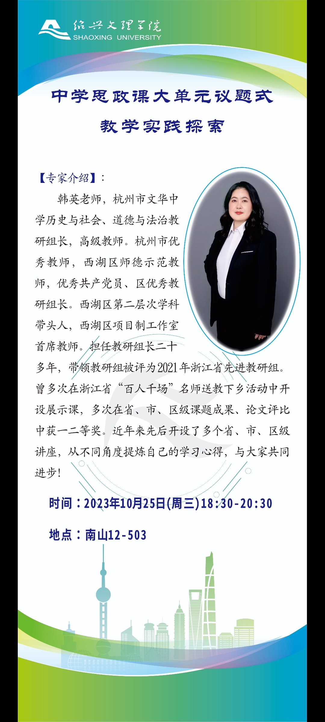 讲座通知:中学思政课大单元议题式教学实践探索