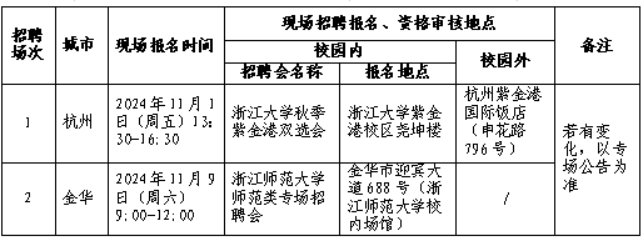 考生报名以现场报名为准。浙江大学校园2025届毕业生秋季紫金港双选会仅限本校毕业生进校园,因此第一招聘场次(杭州)现场报名、资格审核地点设校园内和校园外两个地点,考生可根据自身实际选择参加,其中非浙江大学学生只能到校园外报名地点参加报名;第二招聘场次(金华)现场报名、资格审核地点只设一处,考生都到浙江师范大学校园内报名。