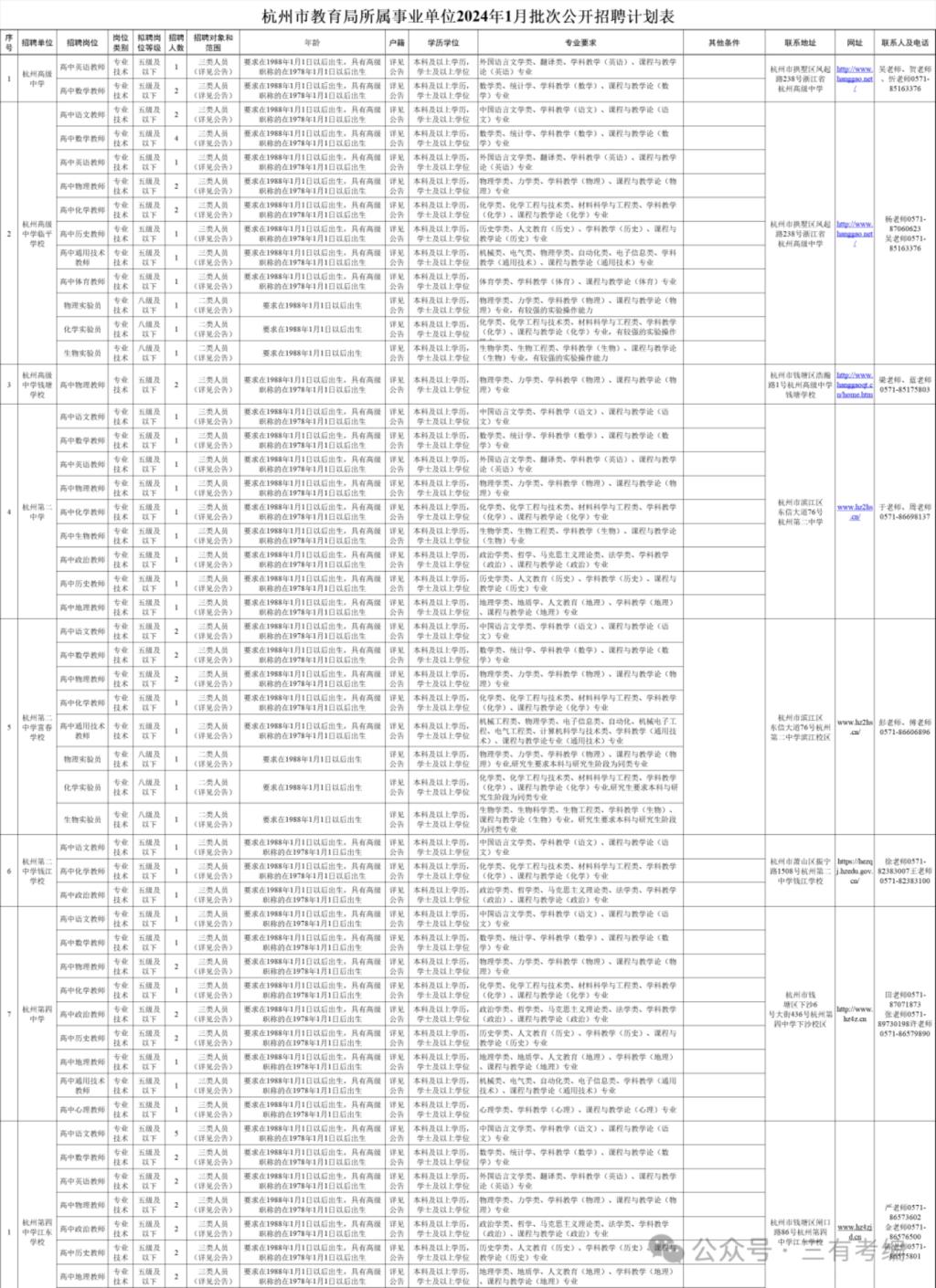 7.具备招聘岗位要求的其他条件,详见《杭州市教育局所属事业单位2024年1月批次公开招聘计划表》(见附件1)。