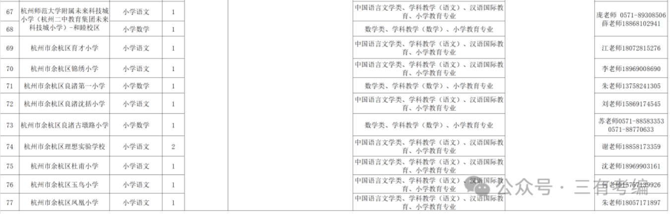 1.具体招聘信息,请考生及时关注余杭区教育局教师招考系统。