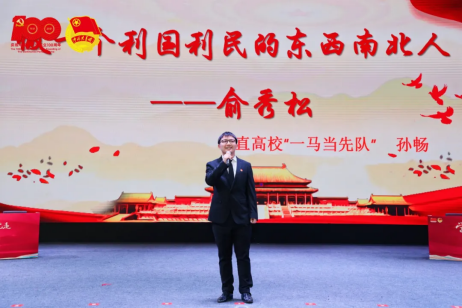 孙畅同学热情饱满地进行了《做一位利国利民的东西南北人——俞秀松》的微团课展示,号召全体青年人,要在秀松精神感召下,赓续其精神血脉,继续奋勇前进,得到评委的高分肯定与观众的热烈掌声。