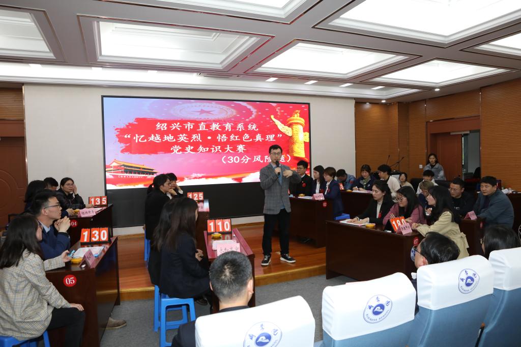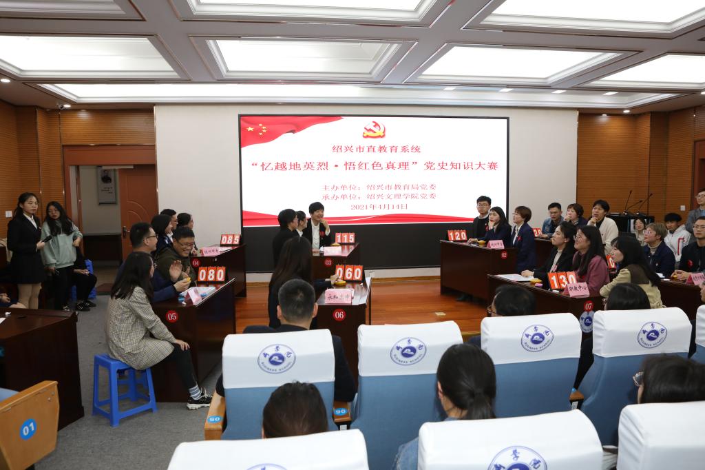为庆祝中国共产党成立100周年,扎实开展党史学习教育,4月14日下午,绍兴市直教育系统“忆越英烈·悟红色真理”党史知识大赛在伟德官网商学院报告厅举行。本次比赛由绍兴市教育局主办,伟德官网承办,以学党史、新中国史、改革开放史、社会主义发展史为主要内容,涵盖时政热点、地方特色等相关内容。