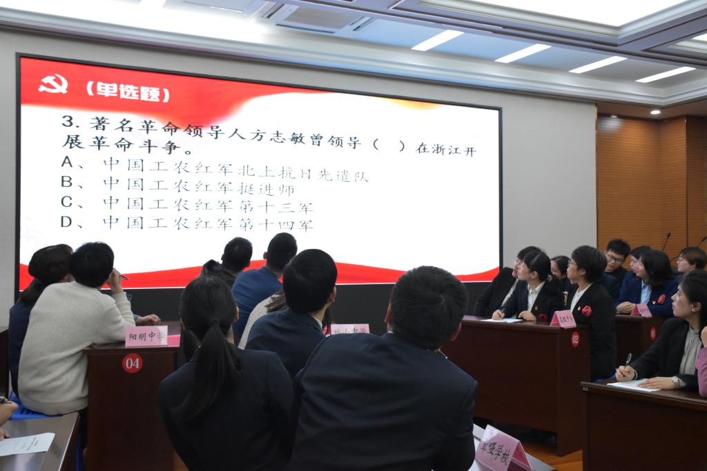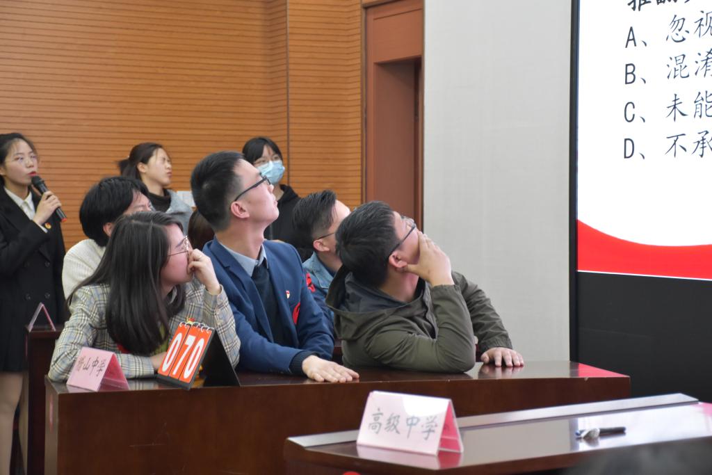 本次知识竞赛分别为资格赛和八强赛,资格赛设置了必答题、抢答题,八强赛设置了必答题、抢答题、风险题等题型,赛前抽签确定答题顺序,并明确各环节答题规则。现场设立了计分员、计时员、监督员等席位,且全程摄影摄像,保证比赛的公平公正。