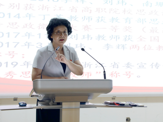 备课会上,浙江农业商贸职业学院BV伟德官方网站院长、浙江省首批高校思政名师工作室负责人、首届全国高校思想政治理论课教学展示活动特等奖获得者丁菁教授应邀作题为《点燃学生心中的火焰》的专题示范课,重点从参赛体会、课时说课、思政课教师功力三个方面进行了详细地介绍。BV伟德官方网站史纲教研室主任、教工党支部书记班瑞钧围绕学习贯彻习近平总书记在庆祝中国共产党成立100周年大会上的重要讲话精神作专题导学,分享学习体会。BV伟德官方网站周勇军博士以《党史教育融入“中国近现代史纲要”课程教学设计分享》为题进行课题分享交流,畅谈课题心得。