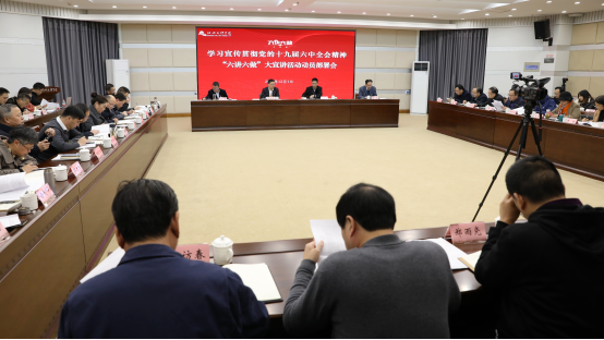 12月1日下午,学校召开学习贯彻党的十九届六中全会精神“六讲六做”大宣讲活动动员部署会暨党委书记专题宣讲会,对学习宣传贯彻六中全会精神的再学习再动员再部署,落实省委、市委和教育系统“六讲六做”的部署要求,对全校“六讲六做”大宣讲活动进行动员部署。校党委书记汪俊昌作动员讲话。校长王建力主持会议。